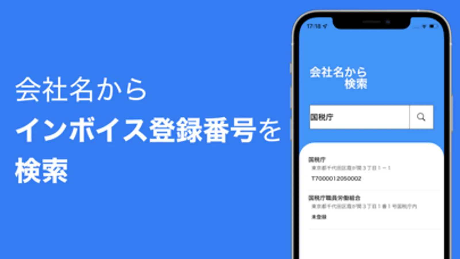 企業名からその会社のインボイス登録状況&登録番号を一括で確認できます。