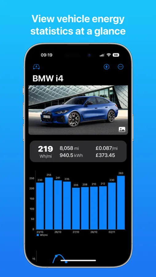 Use the Home/Lock Screen widget to see your vehicle energy consumption stats without having to open the app.