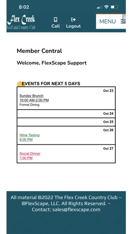 The Flex Creek Country Club app gives members the ability to; view upcoming events in Club Calendar, make dining & calendar event reservations, access member directory and update the member profile.