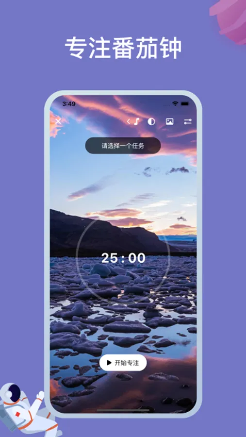 - 白噪音:多样专注背景图片和白噪音可选,帮助你沉浸在专注中。