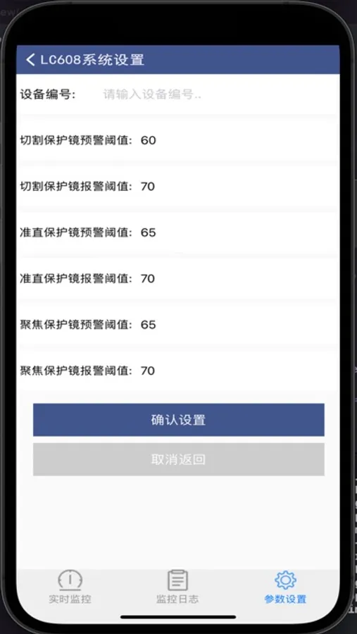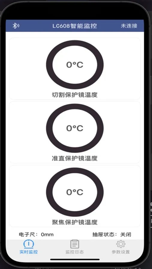 欧斯普瑞LC608型号智能切割设备专用APP,通过手机APP蓝牙实时监控设备上的镜片温度参数,还可以设定相应的阈值以显示控制状态。