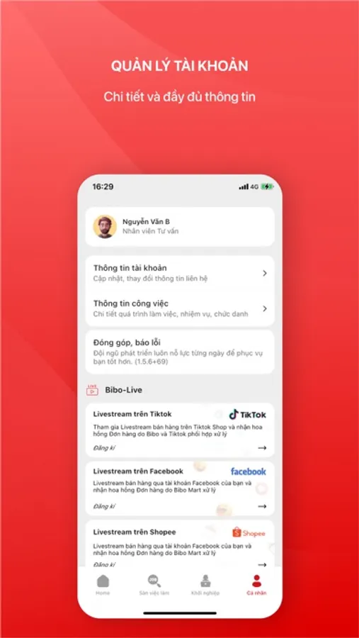 Là nền tảng giúp ai cũng có thể đăng ký làm việc, cung cấp các cơ hội việc làm rộng rãi cho cộng đồng lao động. Hệ thống đánh giá và xếp hạng tự động, tính lương tự động và tức thời, mang đến cơ hội phát triển công bằng và làm chủ thu nhập cho đội ngũ nhân sự.