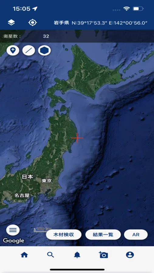 mapry木材検収はiOS mapryの地図機能をベースに、3Dスキャナー機能で撮影した点群の保存・表示できるアプリです。