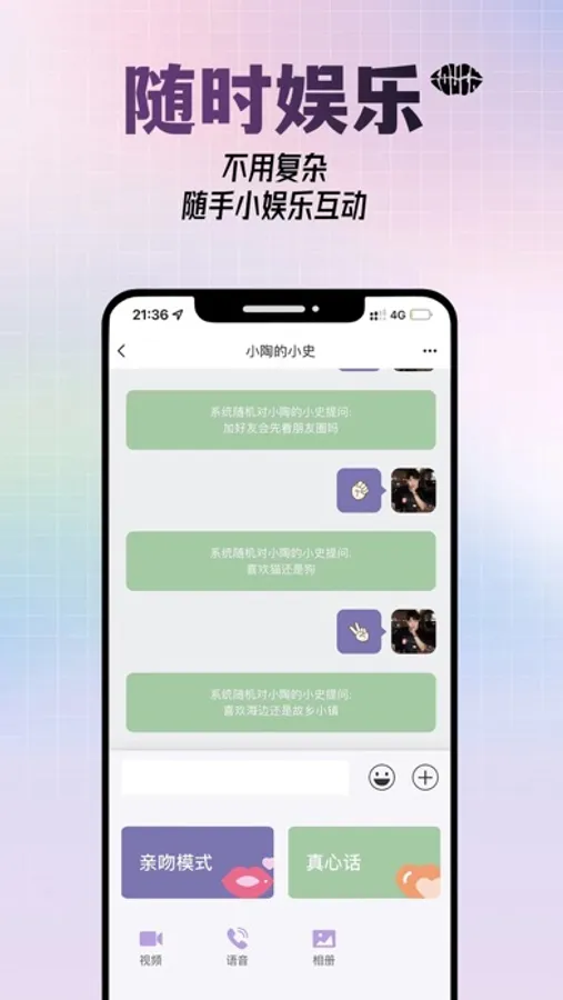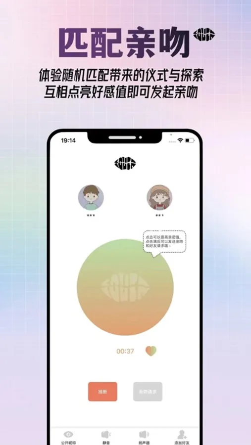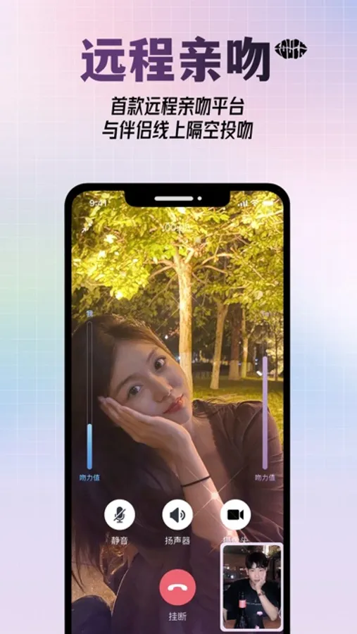 可能吻是一款由北京电影学院新媒体艺术的毕业团队师生合作、设计 并研发的一款为智能终端提供远程仿生交互功能、即时通讯的应用程序APP 它能在不同地点远距离传递用户的“亲吻动作”,是人与人之间远程沟通的情感媒介,致力于让两性及伴侣得到一些多元化的仪式感,并且搭配了平台即兴社交功能以及探索功能,将小仪式打开大家的生活乐趣。