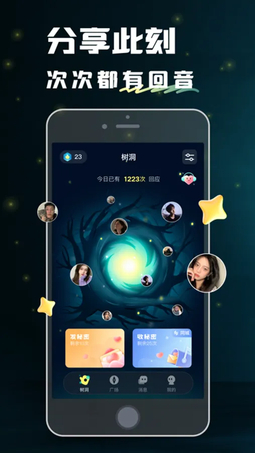 向树洞分享你的想法,即刻便能收到回音,满足你的分享欲。