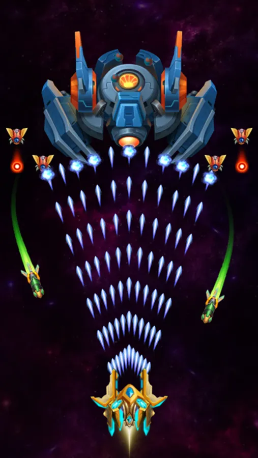 + Shoot and destroy: Navigate through different galaxies and destroy waves of alien enemies, including challenging bosses. Use your powerful weapons and shields to stay alive.
