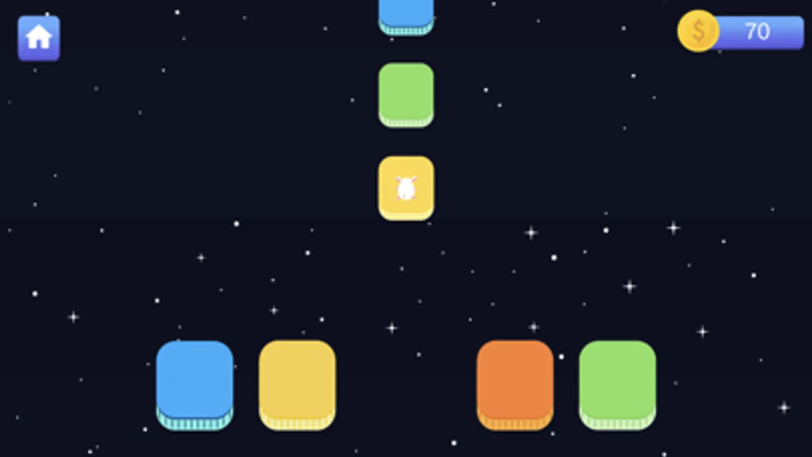 You play the role of a sheep named PH moving on colored tiles in outer space. Choose the right color in front of that sheep so that the sheep jumps up.