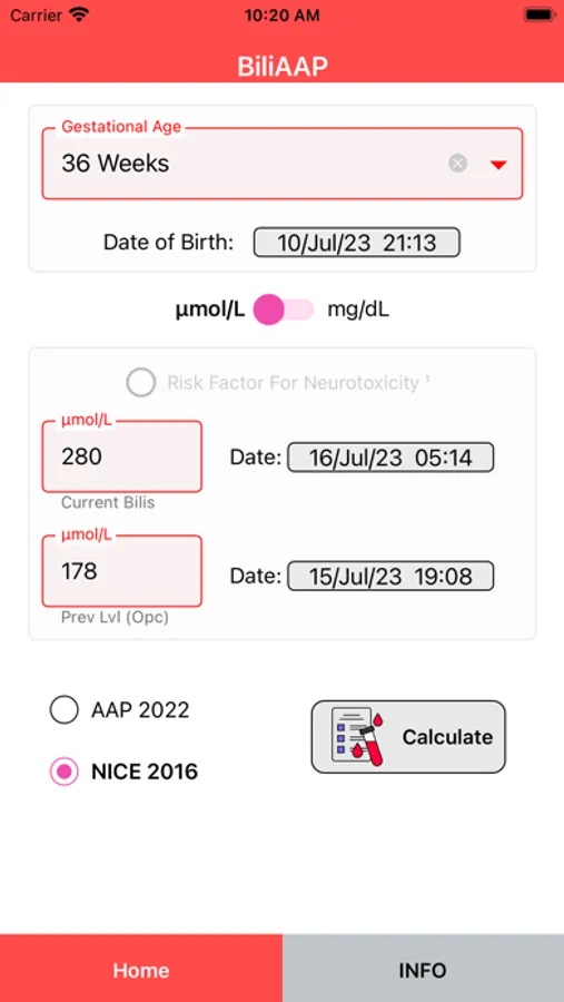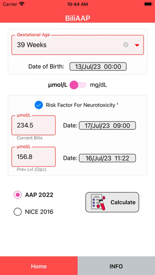 ¤ Calculator and Clinical Decision Support Systems based on AAP 2022 and NICE 2016 guidelines for the management of hyperbilirubinemia in newborns.