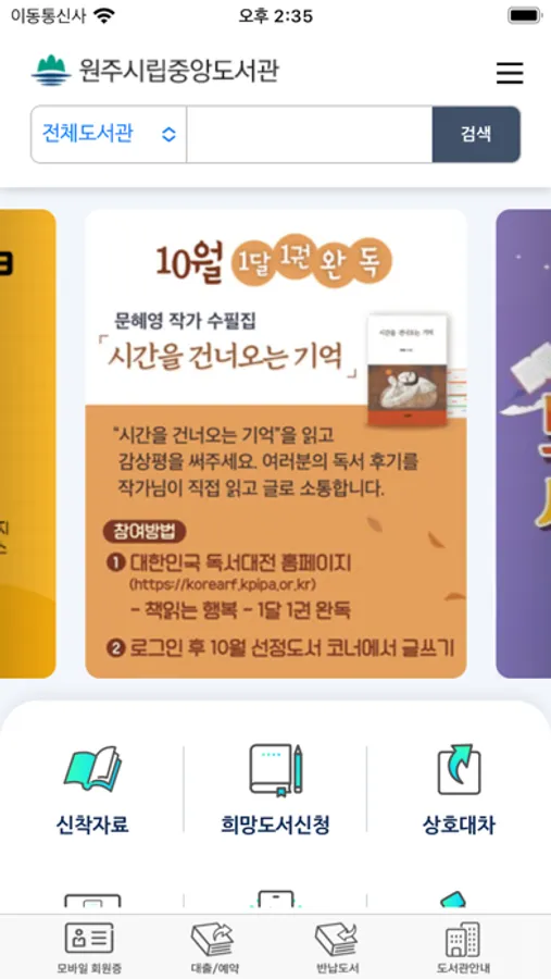 원주 시립 스마트 도서관은 원주시내 도서관들을 하나로 통합한 원주시립 전용 어플리케이션입니다.
