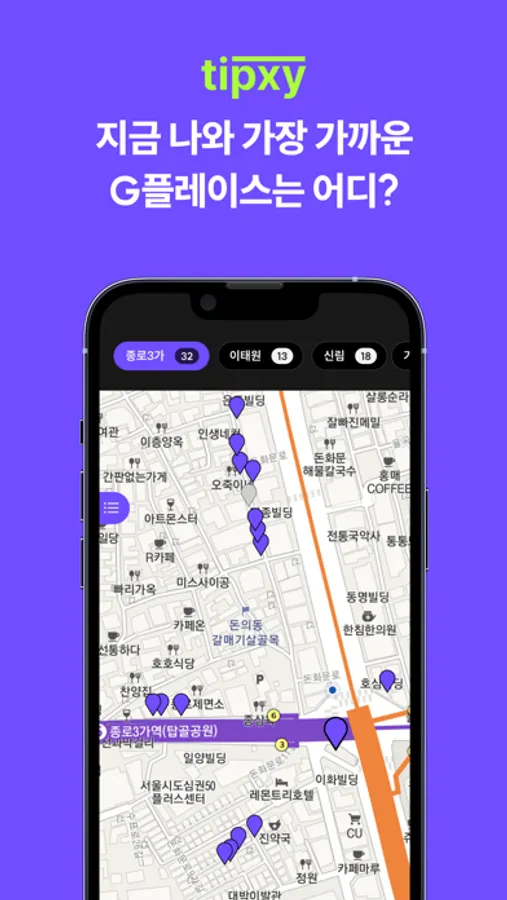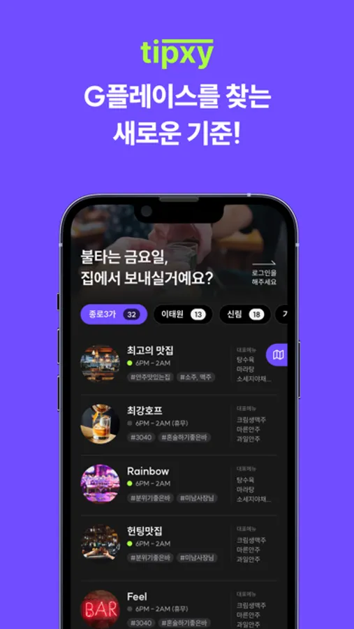 종로, 이태원 그리고 신림등 주요 지역의 소문으로만 알려진 G Place을 모아 안내하는 가이드 앱 서비스 입니다.