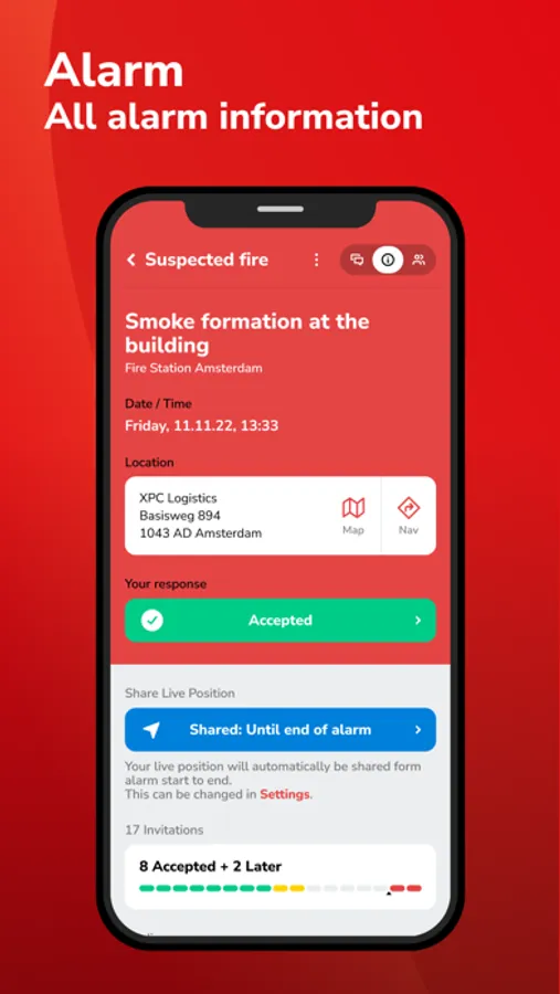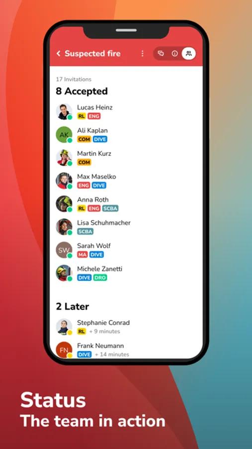 • ALARM FEEDBACK: Here you can see who is deployed when and what qualifications the individual team members have.