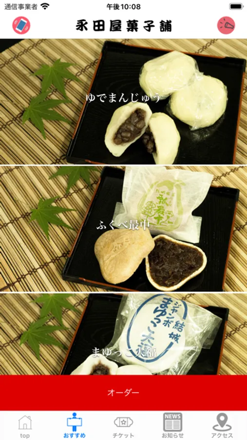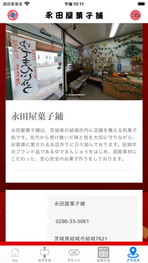 永田屋菓子鋪アプリは、茨城県結城市結城7621にある和菓子屋「永田屋菓子鋪」の公式アプリです。