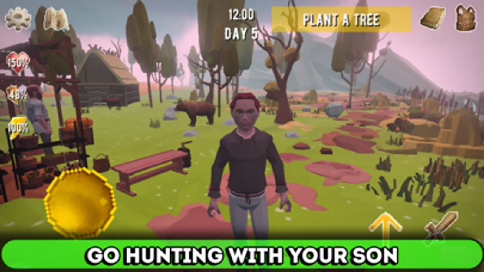 Create your family and offspring! Hunt with him, play, fish, livestock and farm! The son will grow every day!