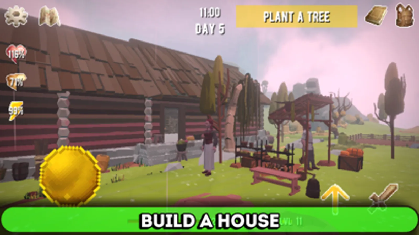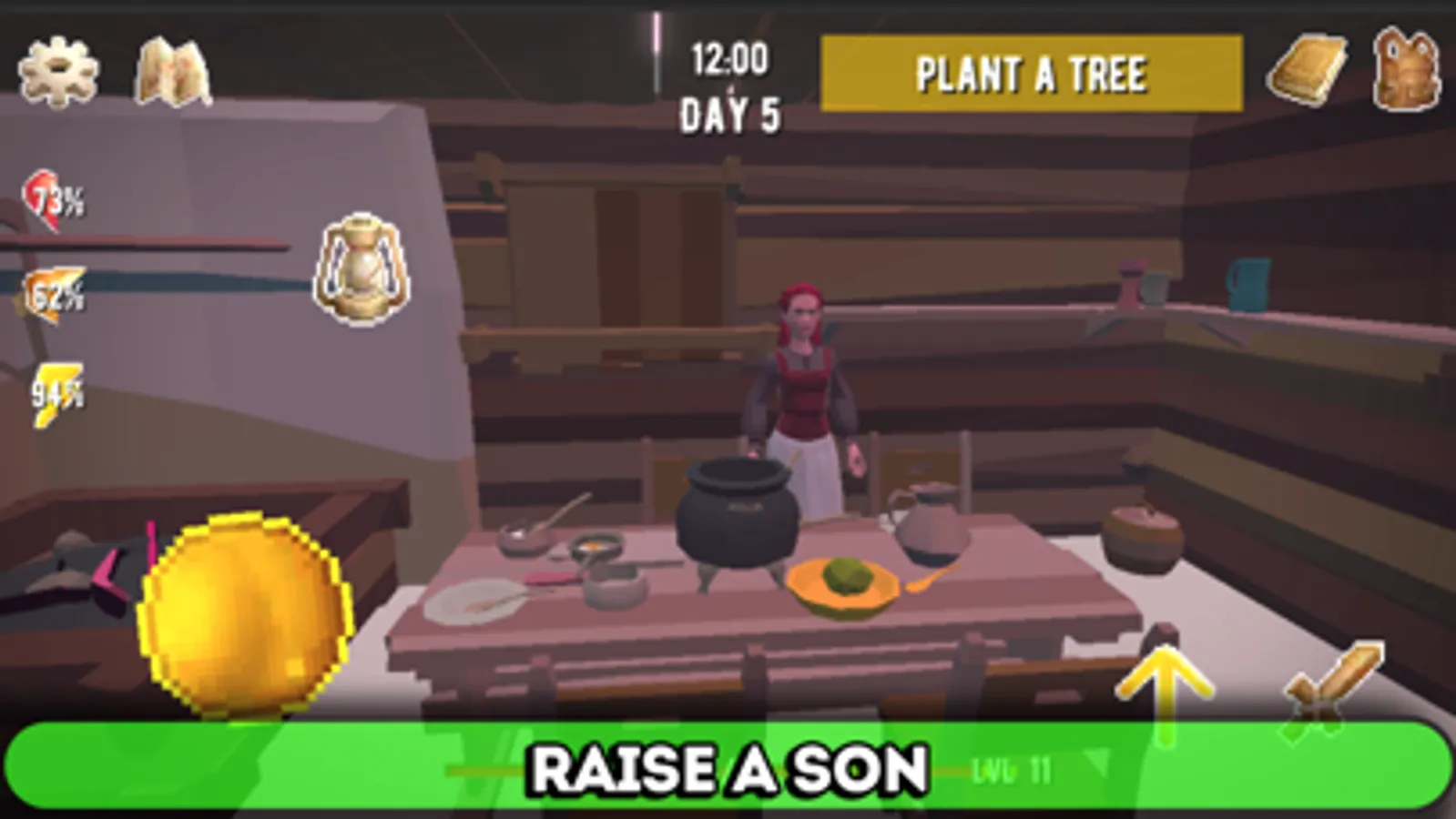 This is a game where you have to live in a medieval world and do 3 things: build a house, plant a tree and raise a son. RPG game conveys the experience of the life of an outcast who was kicked out of the village. Download this game right now and start surviving and building a village in the open world!