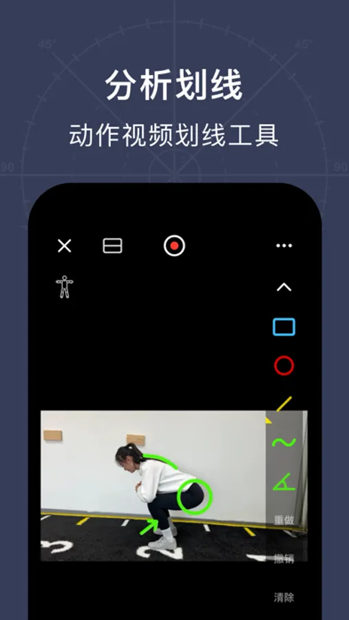* 动作分析:对动作视频进行各种方式的划线和角度分析