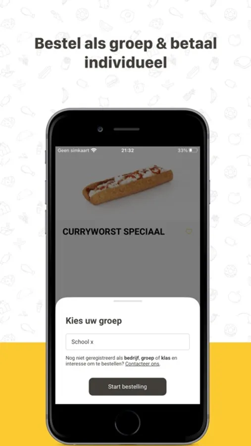 Laat je bedrijf of klas registreren als groep! Iedereen bestelt en betaalt individueel & wij zorgen ervoor dat alles samen klaar is op het afgesproken uur.
