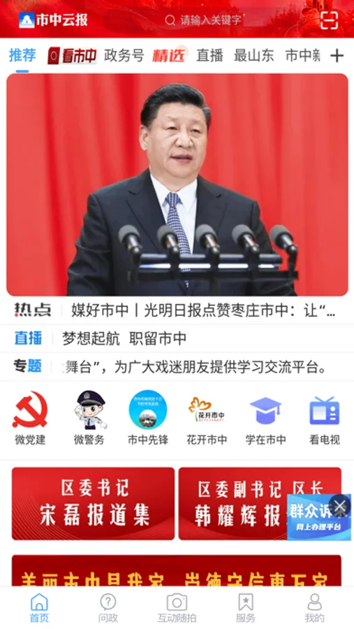 市中云报手机APP是区融媒体中心顺应新时代媒体融合发展要求,倾力打造的全资讯、综合性手机融媒体传播平台,是一款可以看新闻、看直播、在线查询、缴费、问政、购物的综合型新闻客户端。发布市中新闻资讯,引导舆论宣传,深度融合社保、交通、公安、医疗、教育等应用为一体,人与卡互通、人与服务互通,人与政府职能部门互通。市中区居民可借助市中云报手机App直接办理或预约办理网上的事项,实现“单一入口”,即网上“综合服务大厅”,一个APP解决所有问题。