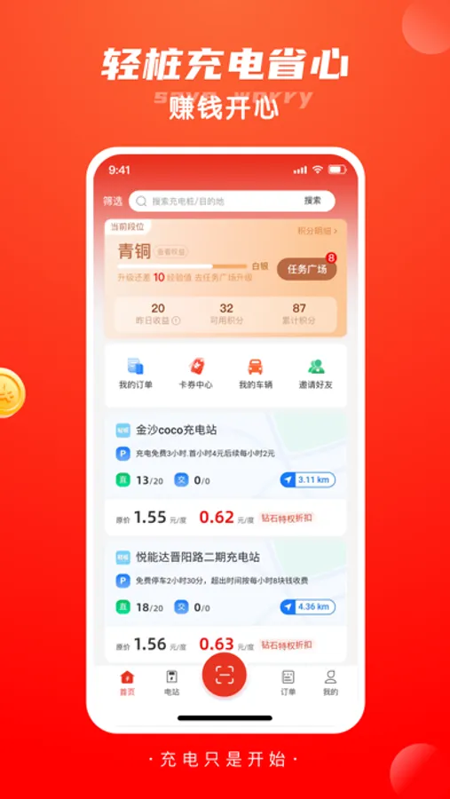 轻桩,充电获积分,越充越便宜。