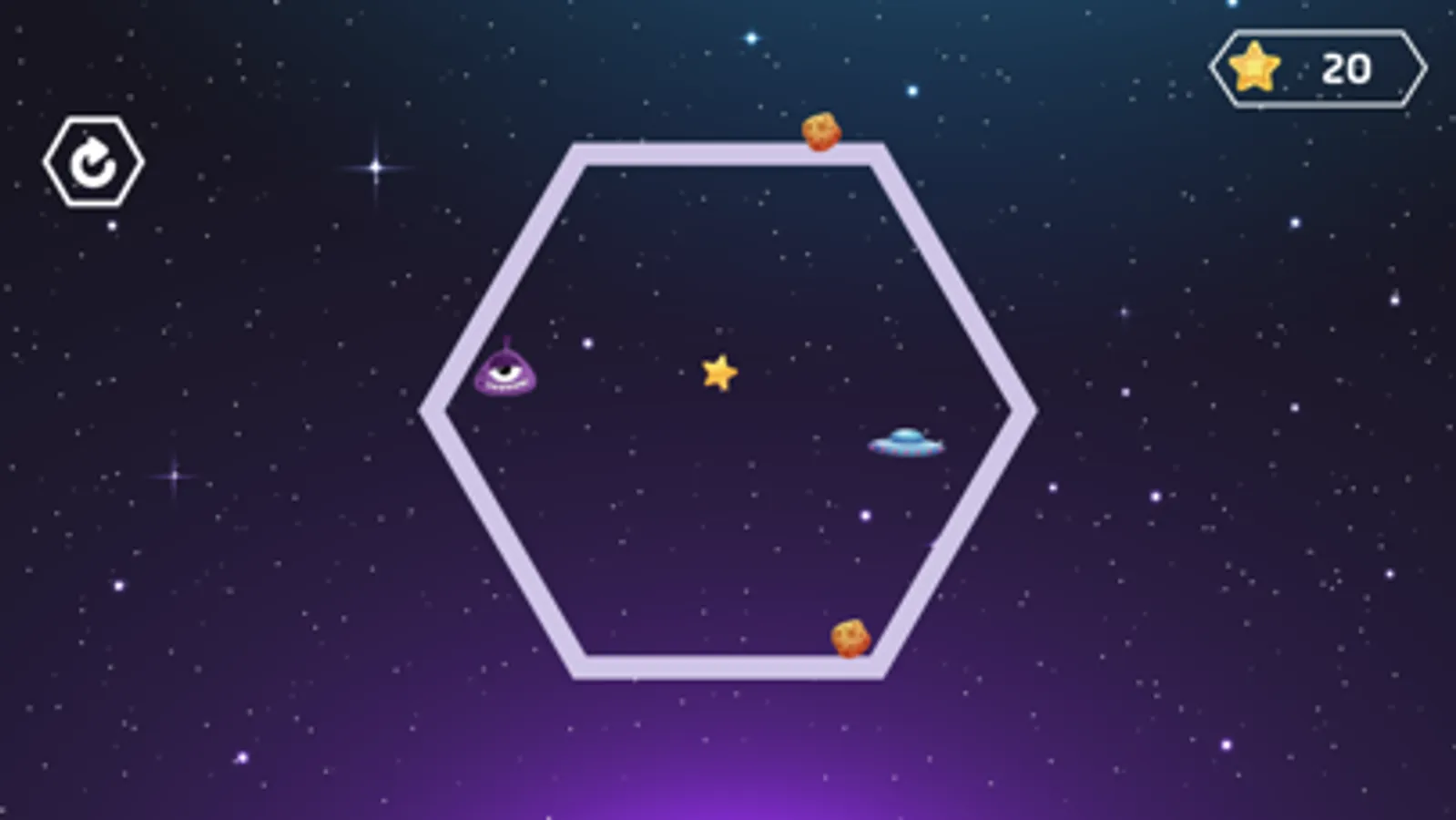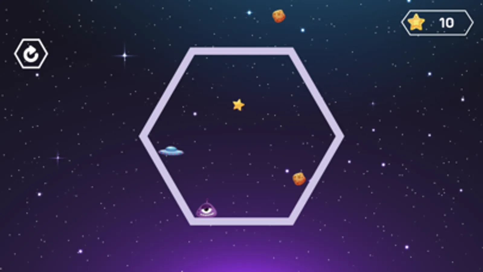 Move the monster clinging to the walls to eat the stars and dodge the ufo's pursuit and at the same time dodge the meteors falling from the sky.