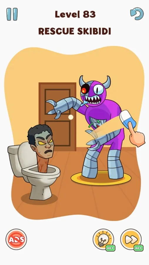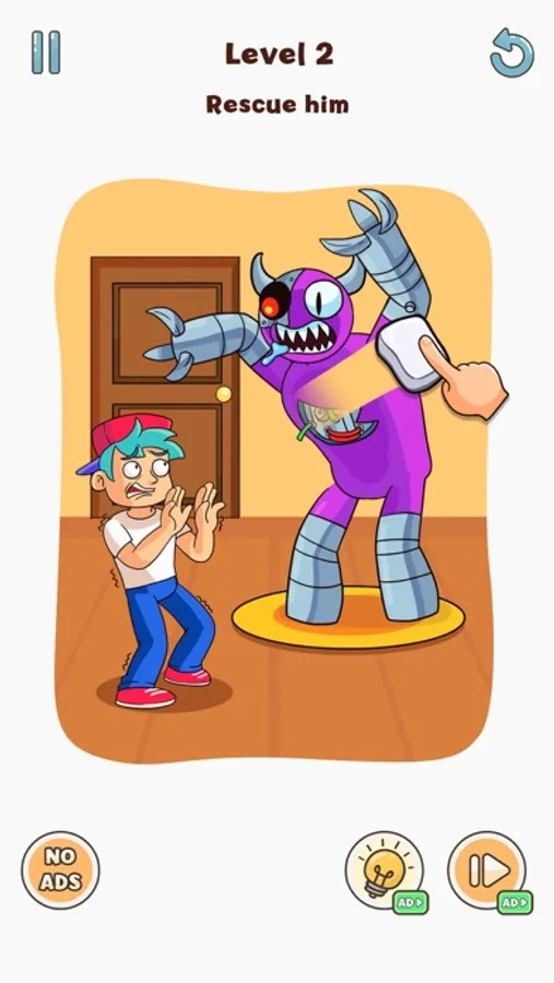 - Delete it very quickly! You just need to touch the screen and drag your finger to erase part of the image and see what lies behind this Monster level.