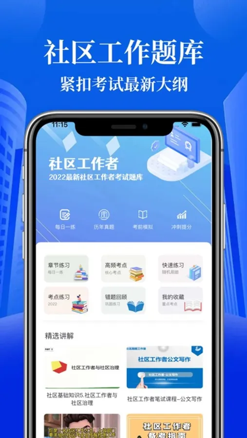 社区工作者考试题库为社区工作者考试备考量身打造,精心准备最新的试题。对社区考试真题预测的准确度,最大限度的把握社区考试命题趋势。为考试的提供了充分的复习准备。主要功能包括章节练习、每日一练、历年真题,考前模拟,冲刺提分等多种形式,让学生边学边练,达到进一步巩固学习效果的目的,帮助学员模拟实战,把握考试精髓,增加考试通过率。