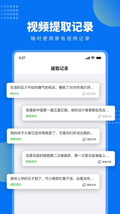 《视频文案提取》是一款能“提取视频中的文字”的智能工具,全程一键操作,分分钟提取出文字,让工作学习事半功倍!