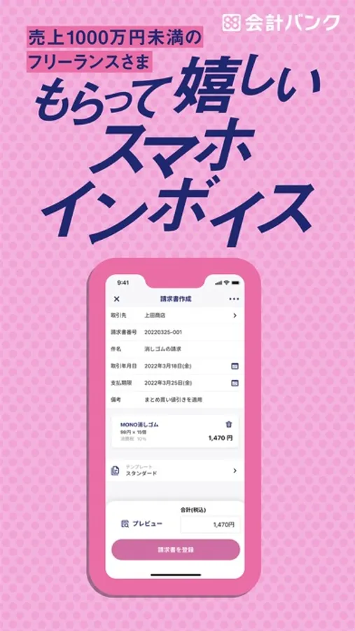 スマホインボイスは、スマートフォンだけで、請求書や領収書などの作成や受取が、実施いただけます