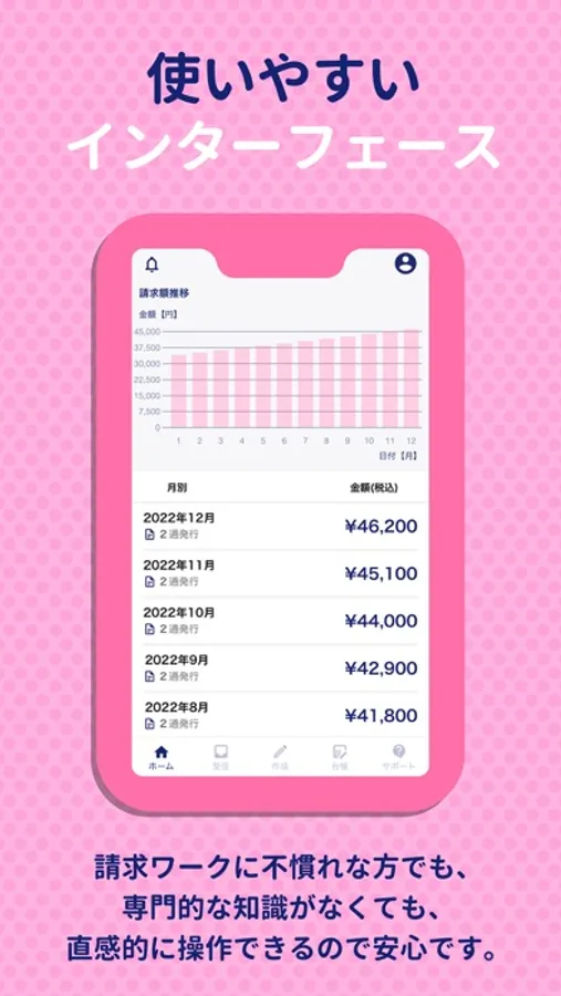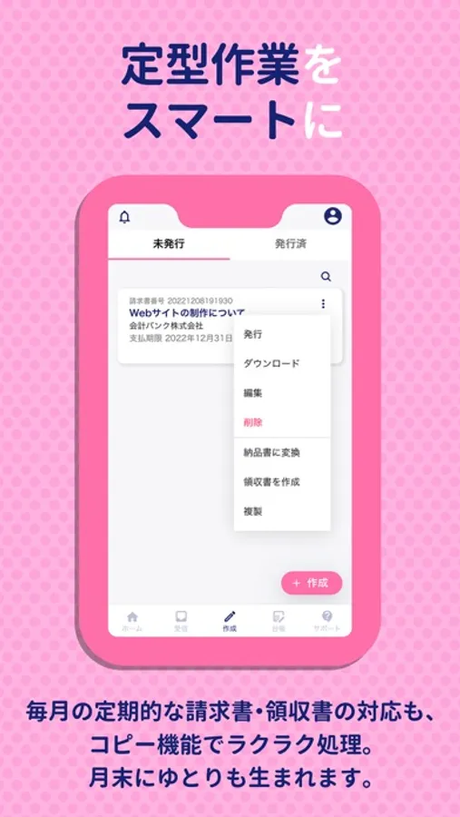 ・作成画面で、請求書や領収書などを、簡単に作成・発行