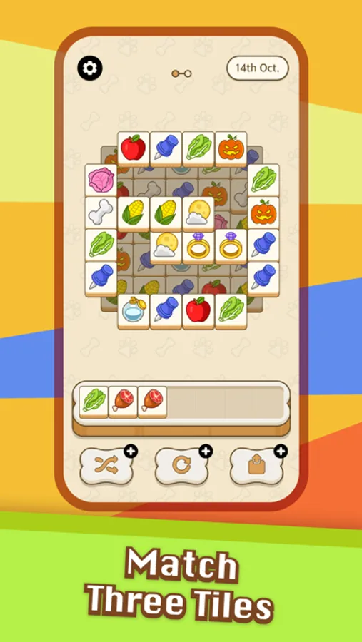 - Click and move the tile into the dog bowl, three tiles with the same pattern will be matched and merged automatically.
