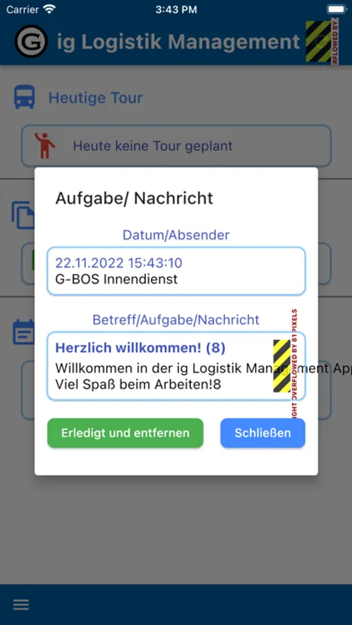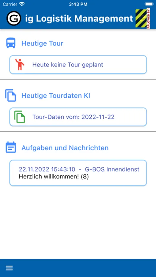 ig Logistik Management garantiert eine schnelle und problemlose Kommunikation für Fahrer und Disposition, inklusive Fahrverhalten, Aufgaben, Krankheits-, Unfall- und Problemmeldung und Verwaltung.