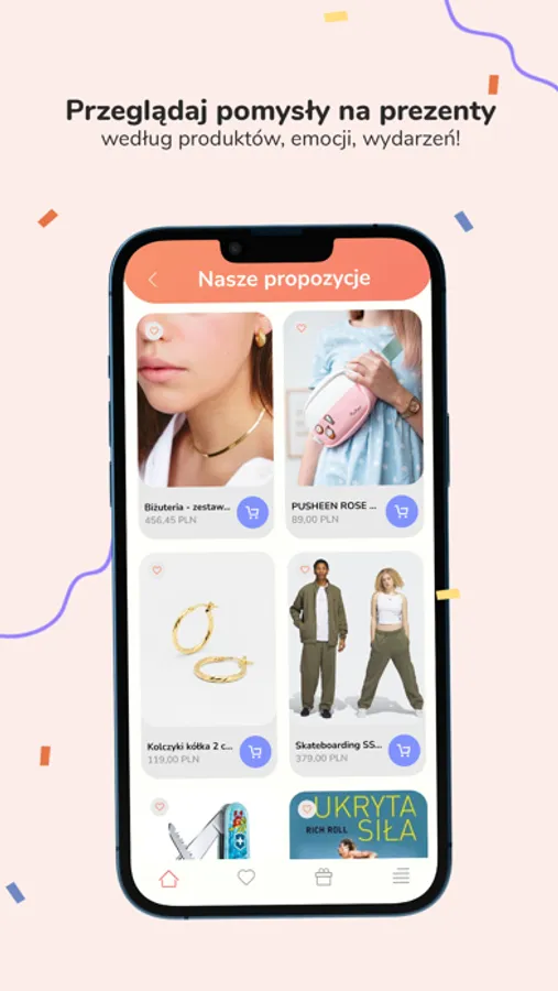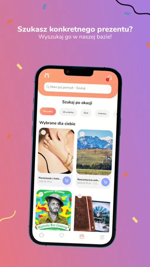 Dzięki charakterowi aplikacji możesz przeglądać propozycje od razu ze szczegółami i ceną — już nie musisz przeszukiwać całego Internetu po konkretnych hasłach, u nas znajdziesz ofertę wielu różnych sklepów z upominkami.