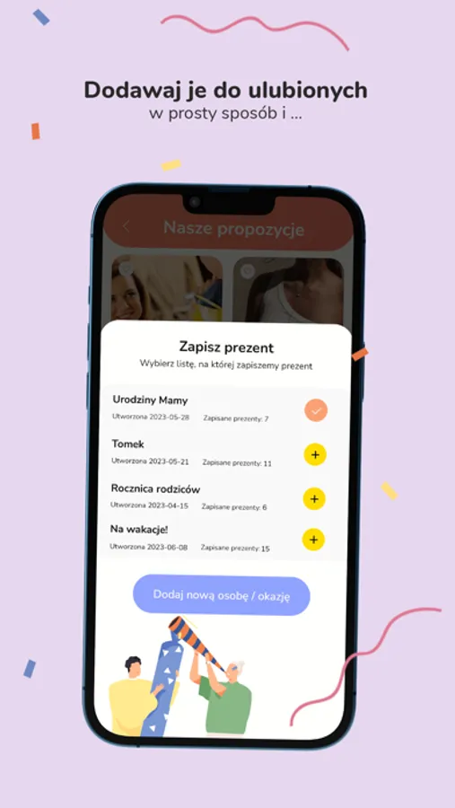 Nie możesz się zdecydować na prezent z wielu opcji? W Co na prezent możesz stworzyć spersonalizowane listy prezentów, dzięki czemu Twoje dodatkowe pomysły też będą mogły zostać wykorzystane. Z łatwością zapisuj pomysły na prezenty na kolejne okazje — prezenty warto dawać cały rok, nie tylko na Boże Narodzenie czy urodziny!