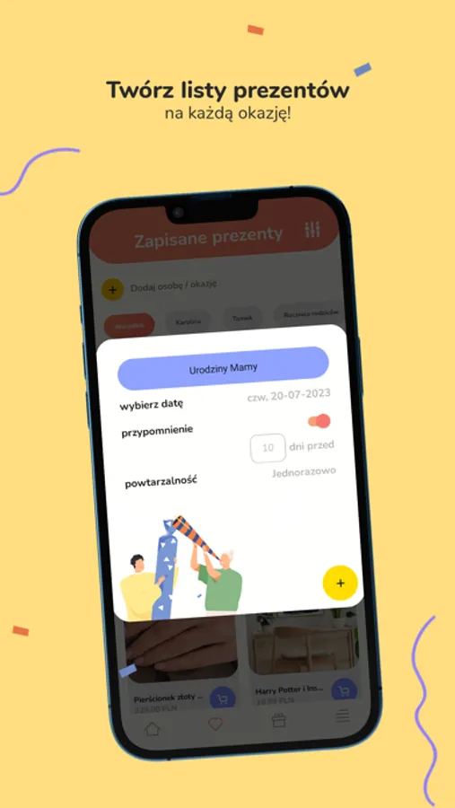 Dzięki funkcji powiadomień w aplikacji Co na prezent nie przepuścisz już żadnej szczególnej okoliczności! Nasza aplikacja zadba o to, byś zawsze był/a na bieżąco z nadchodzącymi wydarzeniami wśród Twoich bliskich, a Ty spokojnie zdążysz zaplanować i przygotować idealny prezent z wyprzedzeniem!