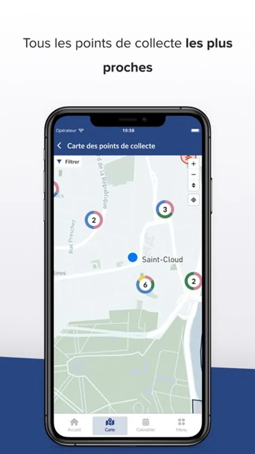 L’application Mes déchets - Saint-Cloud est la nouvelle application officielle de vos services déchets ! Elle recense toutes les informations utiles au tri et à la réduction de vos déchets, en fonction de votre adresse : planning personnalisé de collecte, position et disponibilité des points de collecte de proximité, horaires et informations pratiques sur les déchèteries, consignes de tri et bien plus encore.