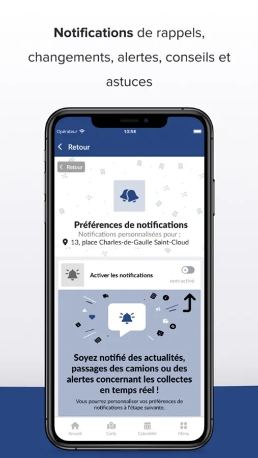 Recevez des notifications de rappel de sortie de vos bacs, de changements vous concernant mais également des conseils, trucs et astuces pour réduire vos déchets !