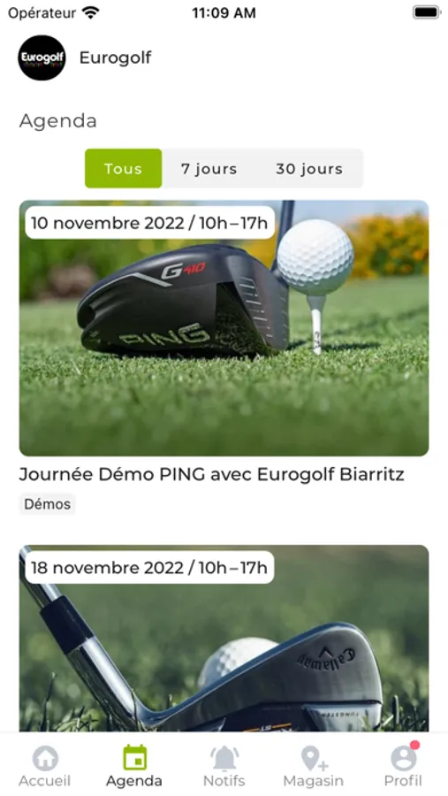 L'App Eurogolf donne accès aux actualités des magasins du groupement Eurogolf. Calendrier des journées fittings et démos, actualités des magasins, actions promotionnelles : tout y est ! Vous serez notifié de toutes les nouveautés matériel, des actus des plus grandes marques de golf et de toutes les informations relatives au magasin Eurogolf le plus proche de chez vous.