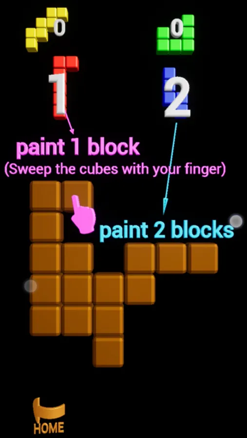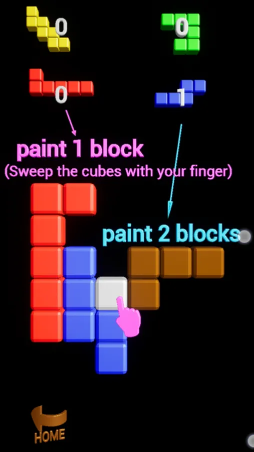 Sweep the cells of the chocolate-color board to paint the blocks with your finger.