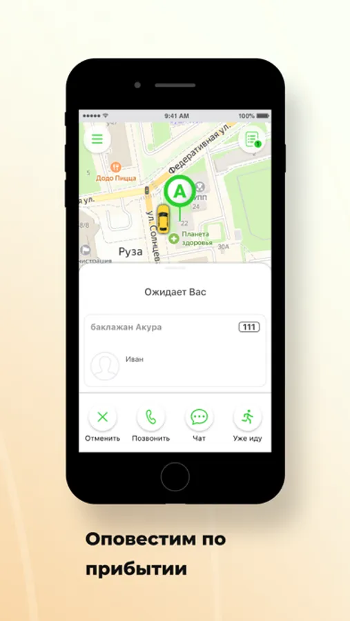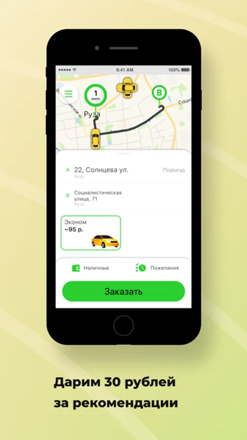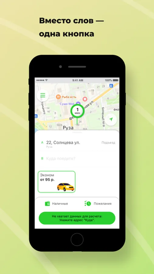 Откройте приложение, укажите адрес и закажите такси, нажав на одну кнопку.