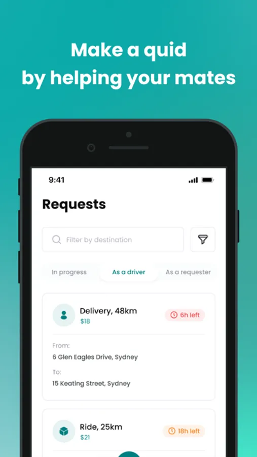 With MateFrate request a ride or a delivery with a tap of button and enjoy the experience. As requesters get yourself and for your parcels a safe ride to your desired desitination. As drivers select and carry out delivery or ride requests and get paid fro your services instantly.