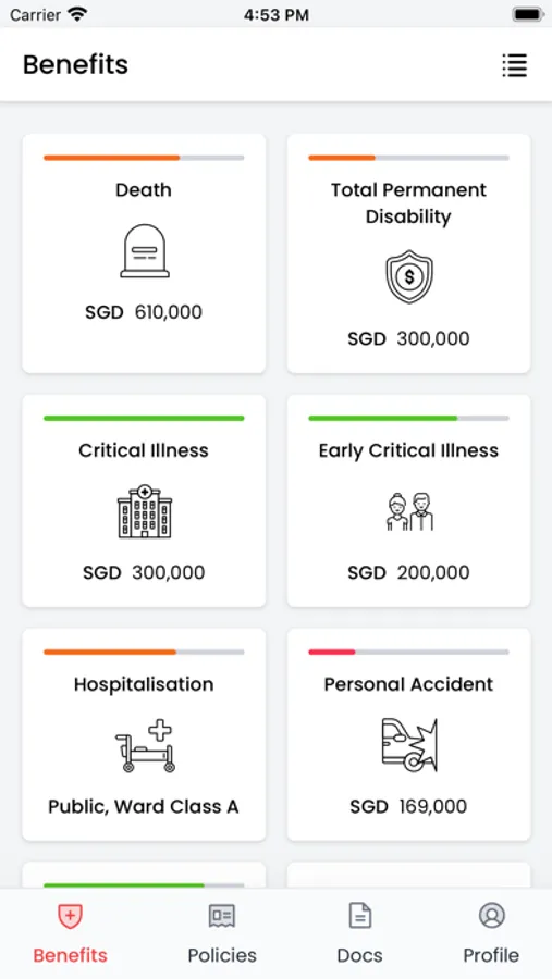 -See a consolidated breakdown of their benefits per coverage type across all policies