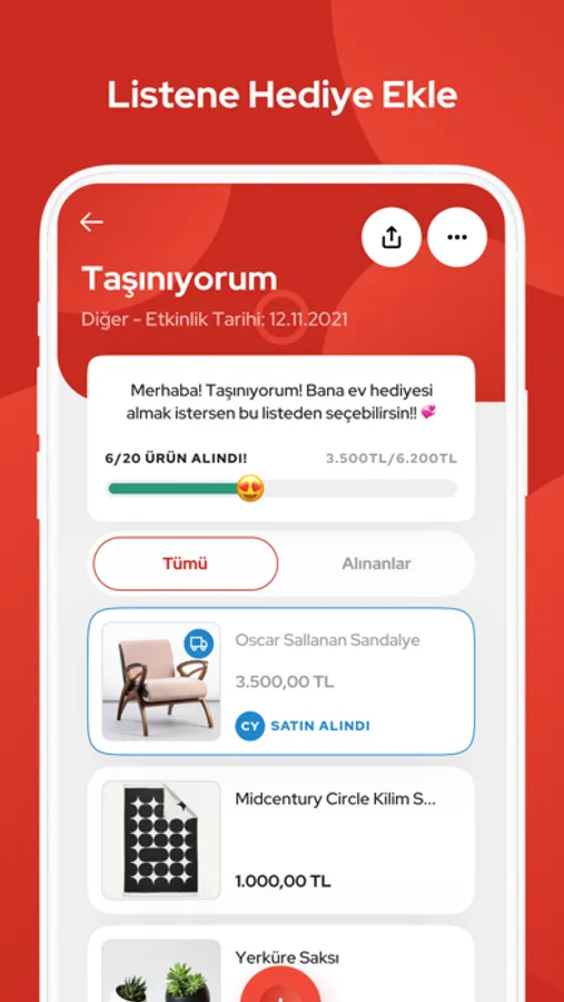 Yeni eve taşınırken, baby shower etkinliğinden önce ya da senin için özel bir günden önce, listeni hemen oluşturup istediğin hediyeleri almanın mutluluğunu yaşa. Yeni nesil hediyeleşme deneyimi yaşatan Gifton ile;