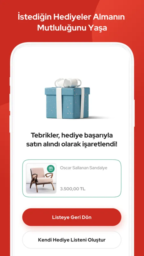 • Severek kullanacağın hediyeleri listeye dönüştürüp arkadaşların, akrabaların ve tanıdıklarınla kolayca paylaşabilirsin,