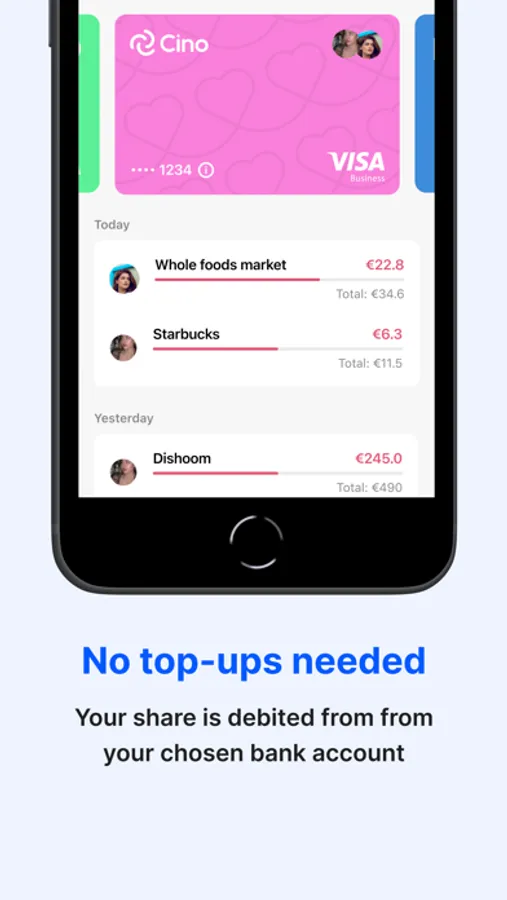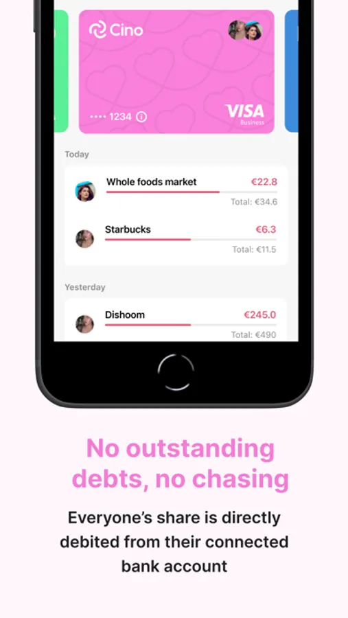 Cino is a virtual card – made for couples, friends and roommates – that splits expenses instantly, online and IRL. Simply connect the card to an existing bank account, add Cino card to your Apple Wallet and start splitting with your chosen group.