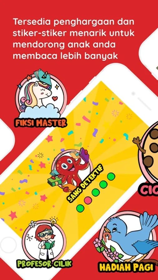 * Tersedia penghargaan dan stiker-stiker menarik untuk mendorong anak anda membaca lebih banyak.