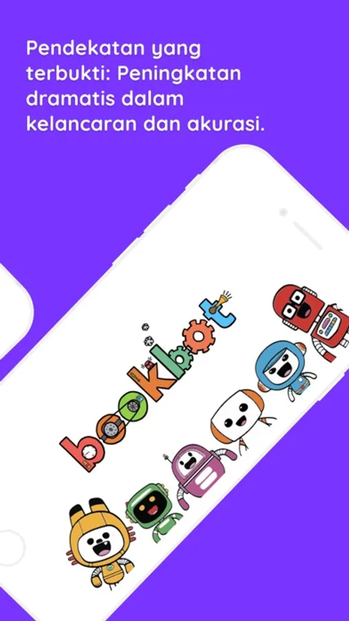 * Bookbot menggunakan pendekatan fonik yang didukung oleh banyak ahli membaca. Pendekatan fonik terbukti secara ilmiah dapat meningkatkan kelancaran dan akurasi membaca anak, sehingga membantu mengembangkan kepercayaan diri Anak dalam membaca secara dengan cepat.
