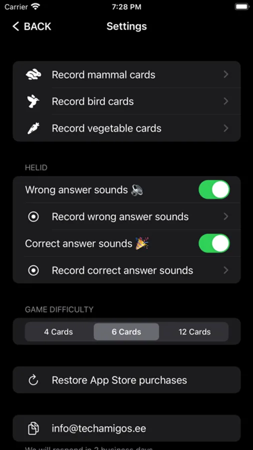 A game aimed at children who already are or want to learn new things in English or Estonian. Parents or anyone else using the app have the option to do a voice-over for individual or all sounds in the application.