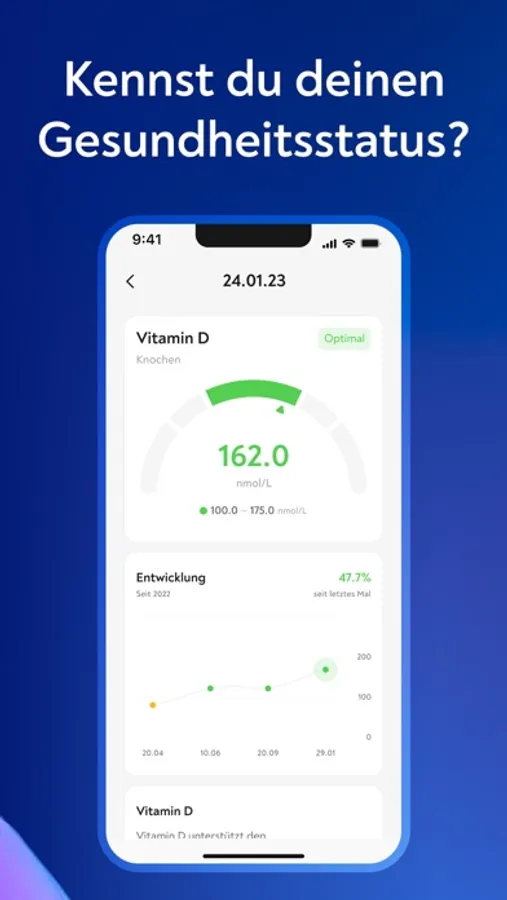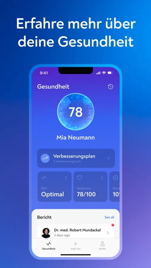 Deine Gesundheit in deiner Hand. Die CARE App erleichtert den Zugang zu deinen Gesundheitsdaten. An unseren Standorten profitierst du von modernsten diagnostischen Methoden im Bereich der Präventivmedizin. Mit der CARE App hast du jederzeit die Entwicklung deiner Werte im Blick. Regelmässige Touchpoints ermöglichen ein kontinuierliches Tracking der wichtigsten Biomarker. So kannst du rechtzeitig intervenieren und dich stetig verbessern. CARE FOR TOMORROW