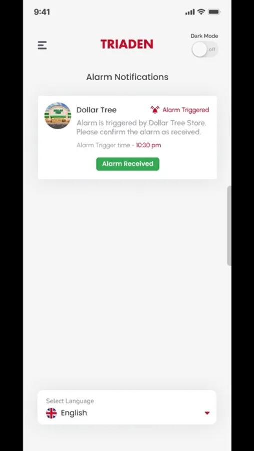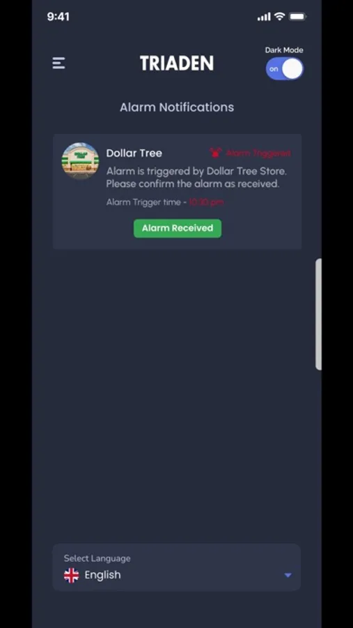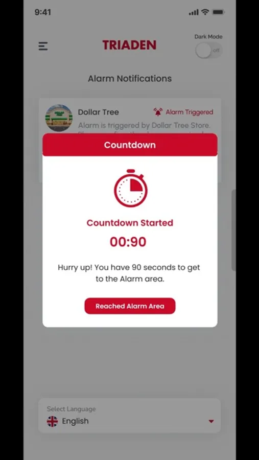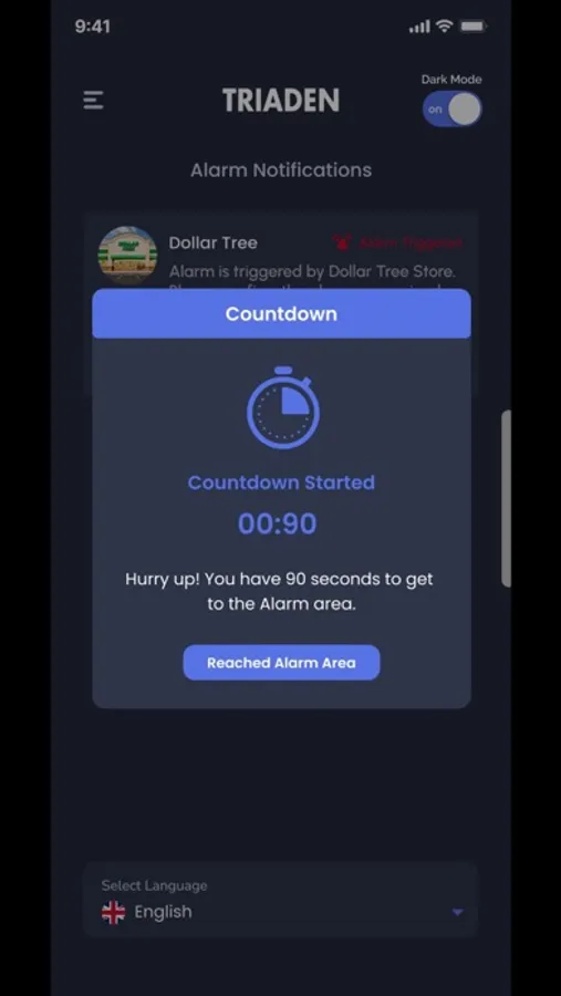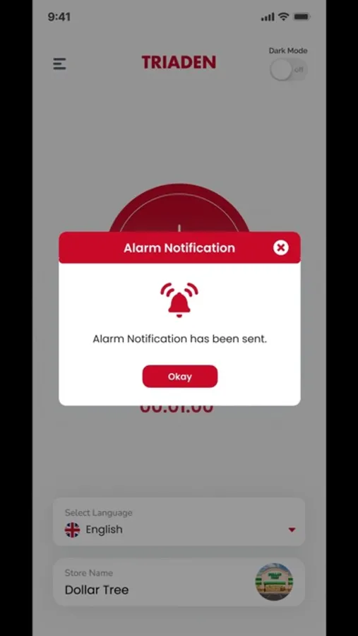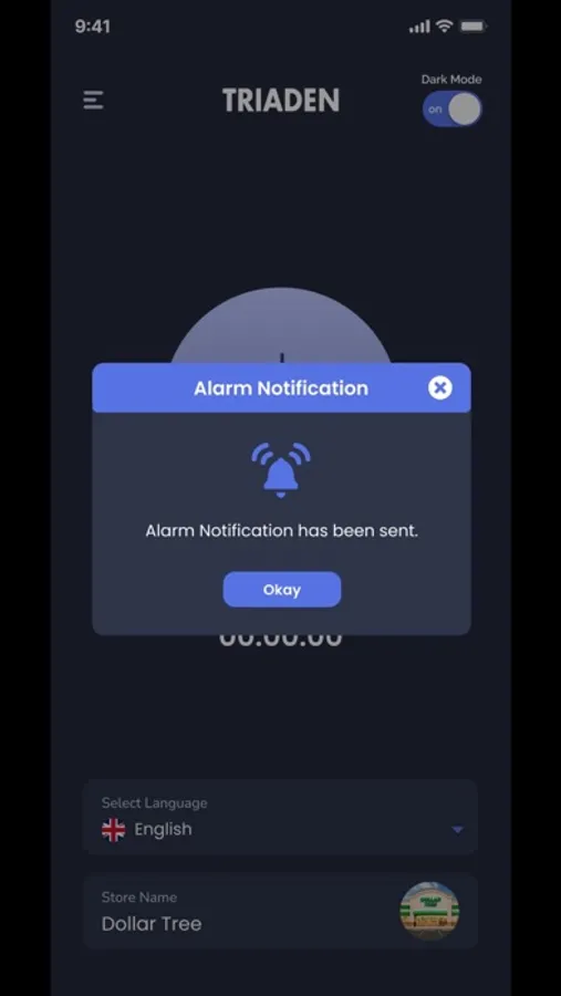 Triaden app is an alarm app with two users store and a guard. The store will trigger the alarm. The notification is generated for the guard. The guard accepts the notification and has to reach the store in 90 seconds. The store confirms when the guard arrives and the alarm is turned off.