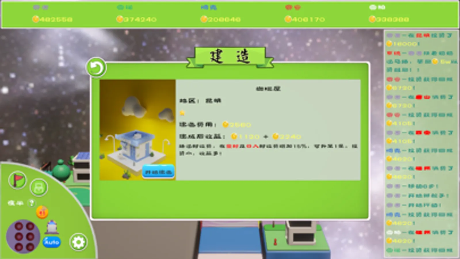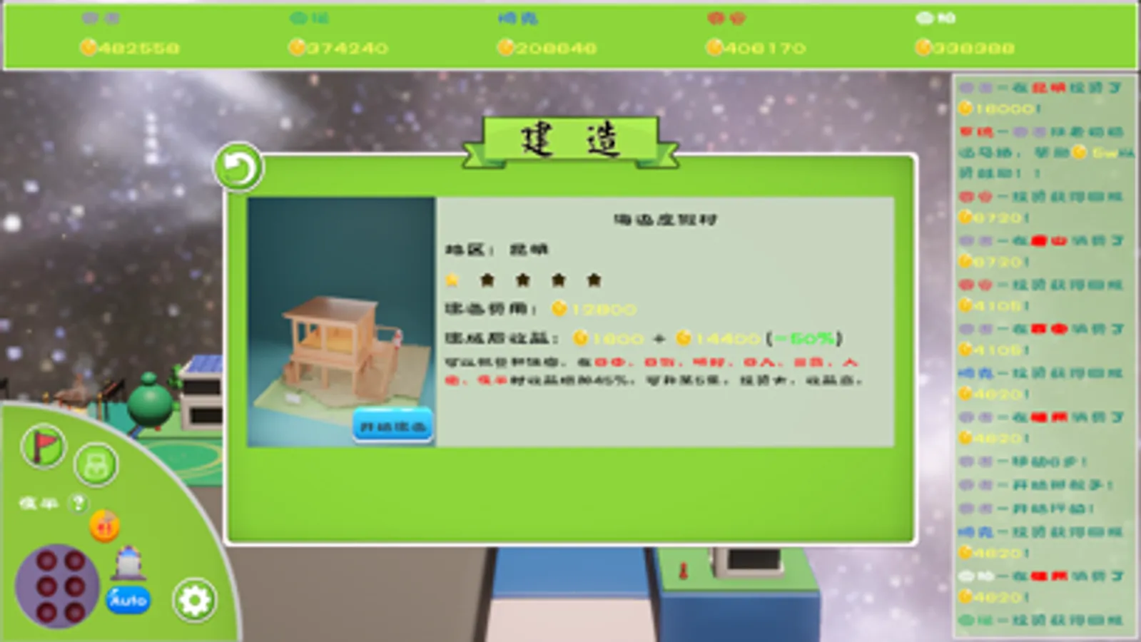 02.玩家行动到空地可以进行投资,如果停留在自己的地上可以选择建造建筑或升级建筑。