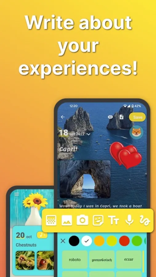 The app is a personal and private diary. Set diary password with pin or fingerprint to protect your diary pages.